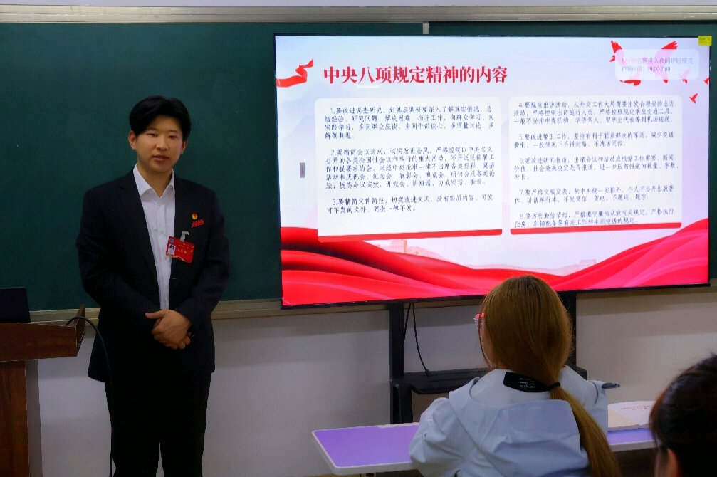 宣讲过程中,刘潇怿聚焦中央八项规定精神实质,结合具体案例进行了阐释和解读。参会人员全神贯注,认真聆听,展现出饱满的学习热情和严谨的纪律作风。