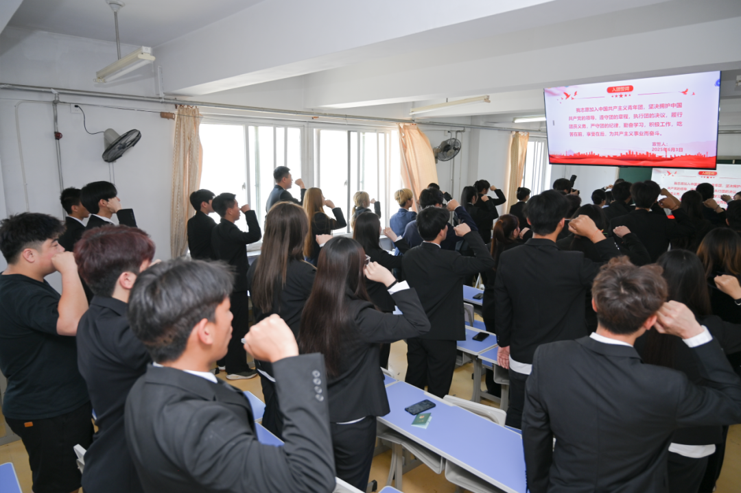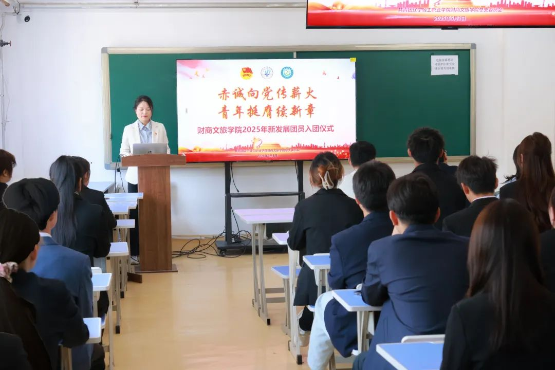赤诚向党传薪火,青年挺膺续新章。6月3日中午,在开发区校区3-429教室,财商文旅学院2025年上半年新发展团员入团仪式在热烈氛围中正式举行。这场仪式,是青春的加冕,更是责任的传承。我院副院长兼党总支副书记刘强,24级辅导员李林祝、聂文琼、曾施琪老师与各位新老学生团员齐出席,共同见证荣耀时刻。
