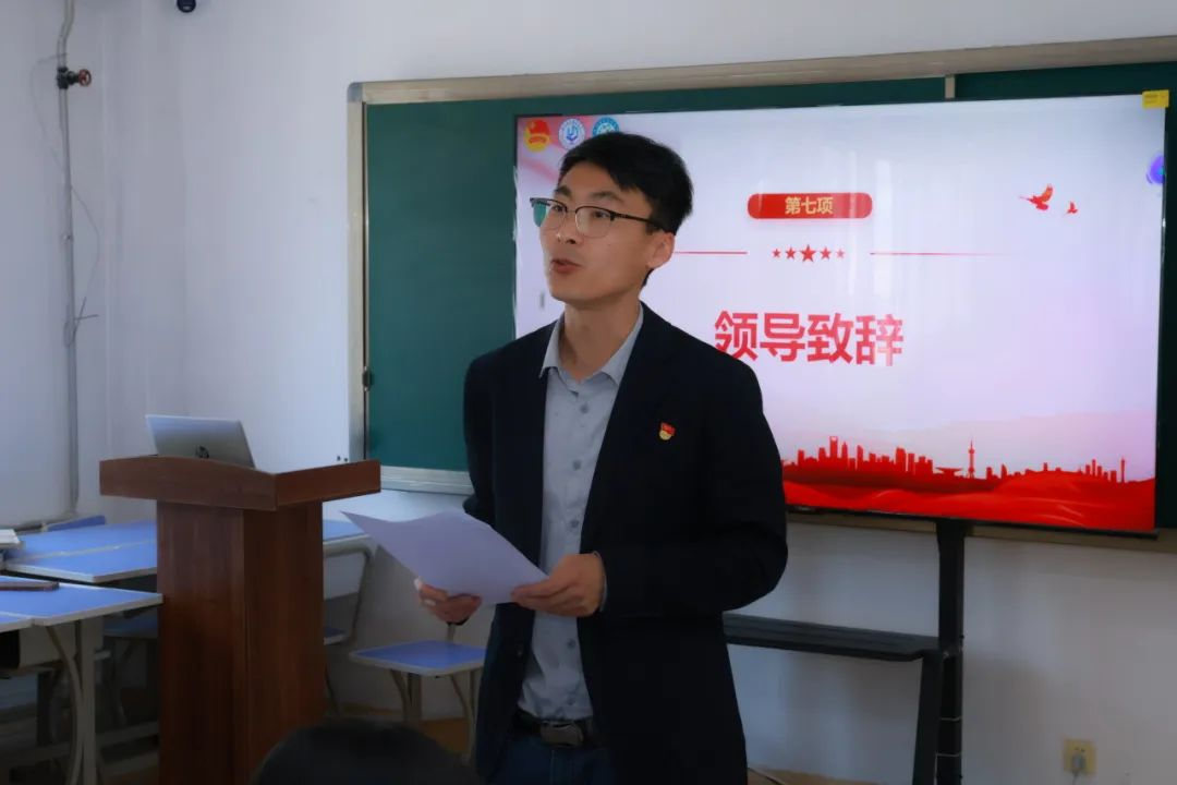 我院副院长兼党总支副书记刘强老师寄语新团员,提出三点期望:“一是要坚定理想信念,筑牢信仰之基;二是要勤奋学习知识,练就过硬本领;三是要锤炼品德修为,学做人树榜样。珍惜韶华,以坚定的信念、扎实的本领、创新的风貌与高尚的品德,在青春的赛道上奋力奔跑,书写属于你们这一代青年的壮丽篇章!”