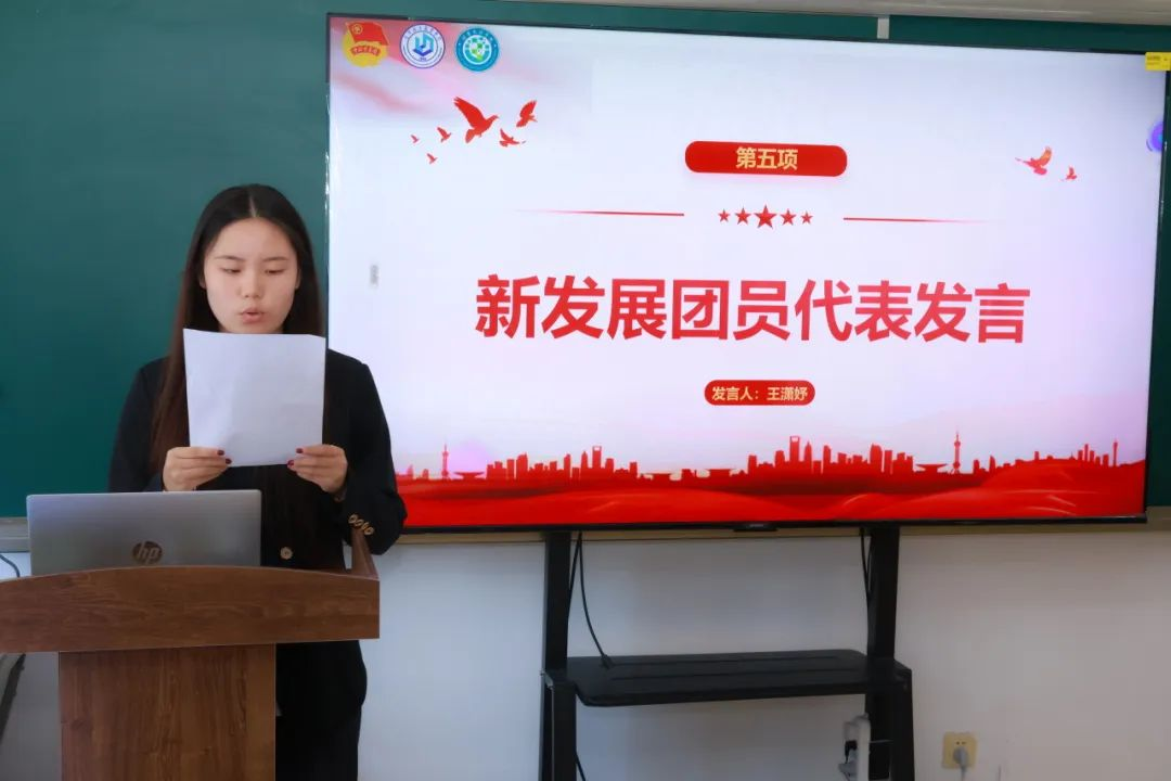 优秀团员代表朱凤春则将自己的成长故事娓娓道来,“共青团见证了我的蜕变,希望大家珍惜这份荣誉,在学习上,勤奋刻苦,勇于探索,用知识武装自己,为实现梦想打下坚实的基础;在生活中,团结同学,关爱他人,传递正能量,用实际行动践行共青团员的使命。在青春路上勇敢追梦,绽放属于自己的光芒!”
