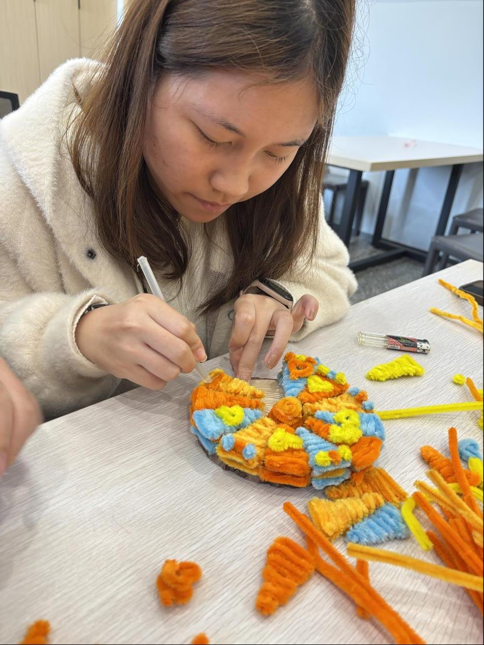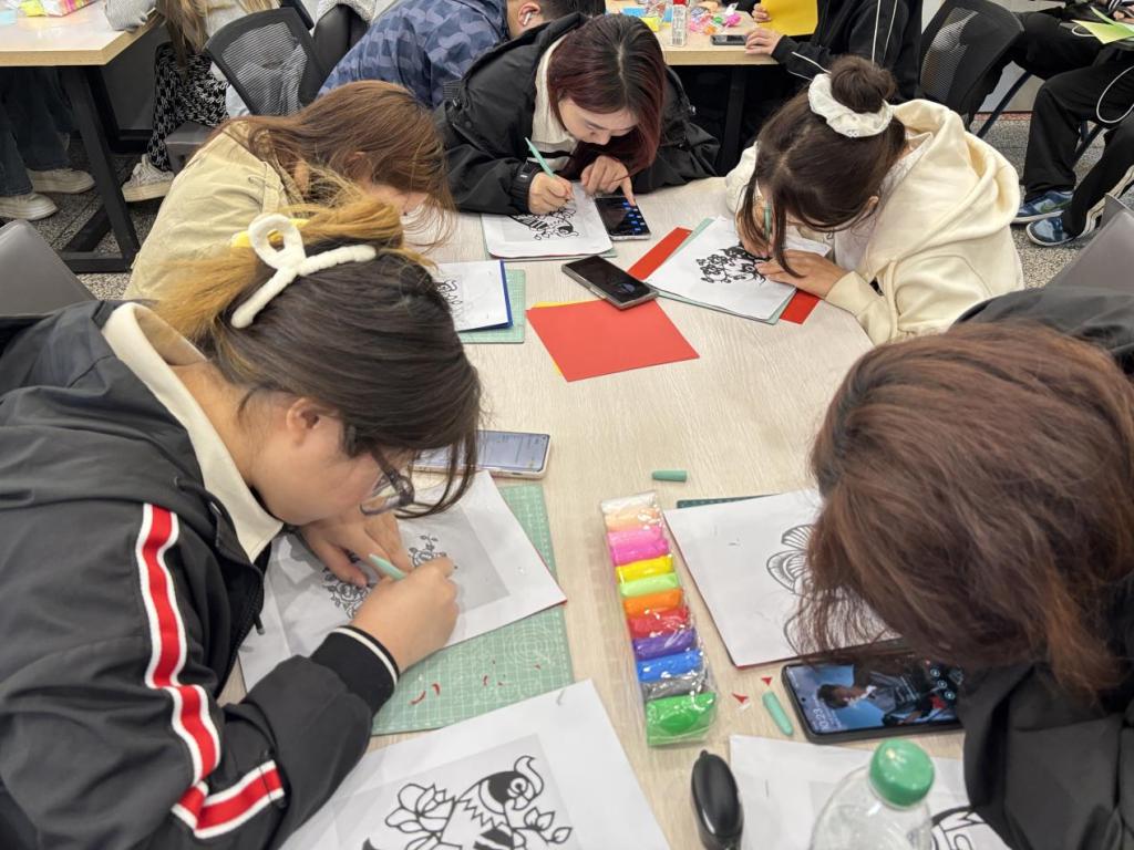 在活动策划课程中,老师们鼓励学生打破常规,大胆尝试将传统工艺与现代设计理念相结合。学生们以小组为单位,开启了一场跨艺术形式的创意协作之旅。他们打破传统艺术形式的界限,将剪纸、粘土、绘画、扭扭棒巧妙融合。经过数周的精心筹备与创作,学生们将课堂所学转化为一件件充满个性的艺术作品,为“煦色新语” 主题展奠定了坚实基础。