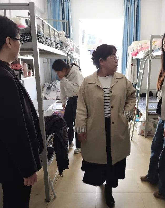 院长赵美玲在女生宿舍走访过程中首先提到,最近的评比中,16间优秀女生宿舍有11间归属财商文旅学院,以此表扬了财商院女生宿舍的绝佳表现。院长在和同学们的交流过程中了解到,她们不仅卫生保持的好,各方面安全隐患也排查到位。最后,赵院长结合近期的安全问题,再次强调了宿舍违禁物品、管制刀具、明火和违电等问题,希望我院女生宿舍能够再接再厉,将优秀的宿舍文化和风气,带出校园,形成独特的“个人品牌”。
