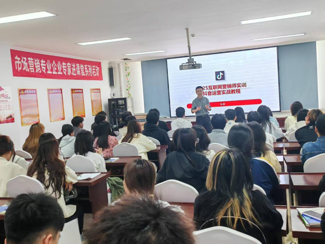 5月14日,财商文旅学院市场营销专业举办“企业专家进课堂”专题活动,特邀大连时代学校校长马浚以“抖音运营实战教程”为题,为师生带来一场聚焦新媒体营销前沿的专题讲座。活动通过剖析抖音平台运营逻辑、市场趋势及岗位核心技能,助力学生精准职业定位、提升实战能力,为未来就业注入新动能。